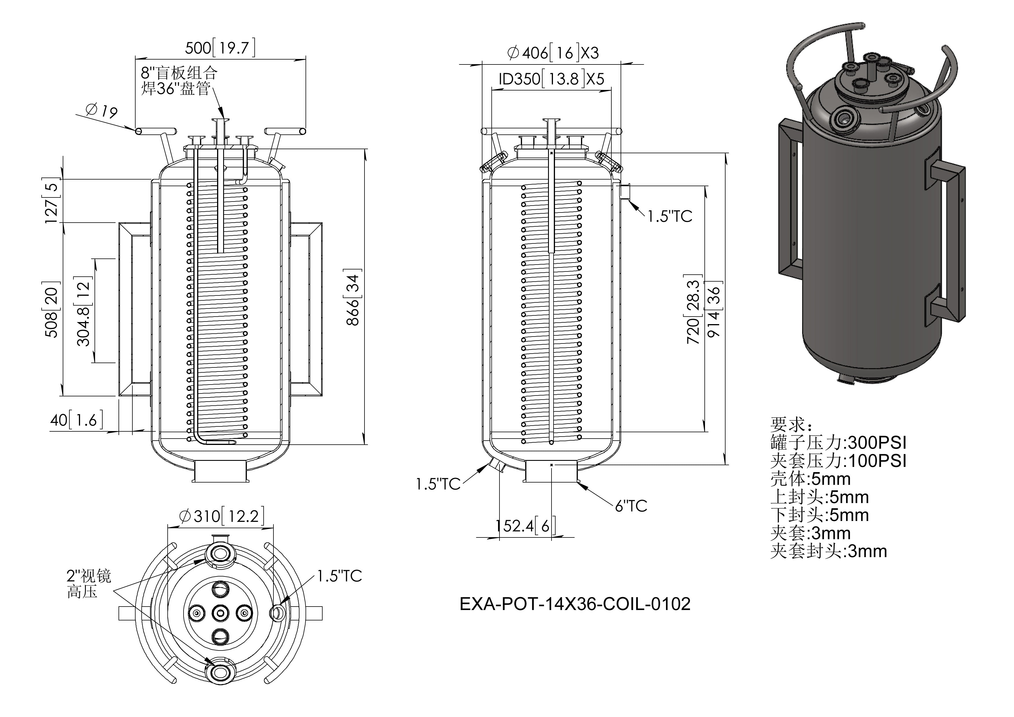14X36 Bottom Spout Base With Spherical Lid And Jacketed