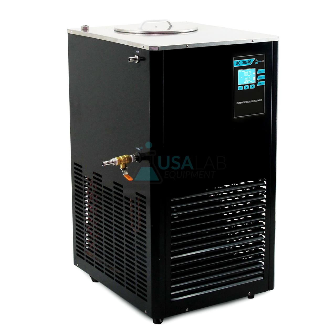 The USA Lab UC-30/40 is a powerful -40°C Chiller with a 30L Reservoir. This chiller is a true lab chiller than is ideal for applications involving vacuum systems, jacketed reactors, rotary evaporators, columns, solvent tanks, and even analytical instruments.